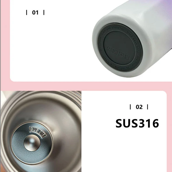 Ito ay vacuum insulated stainless steel bote na may dayami, ang materyal ay gawa sa 316 hindi kinakalawang na asero (panloob na bahagi) at 201 hindi kinakalawang na asero (panlabas na pader), ang kapasidad ay 500ml.