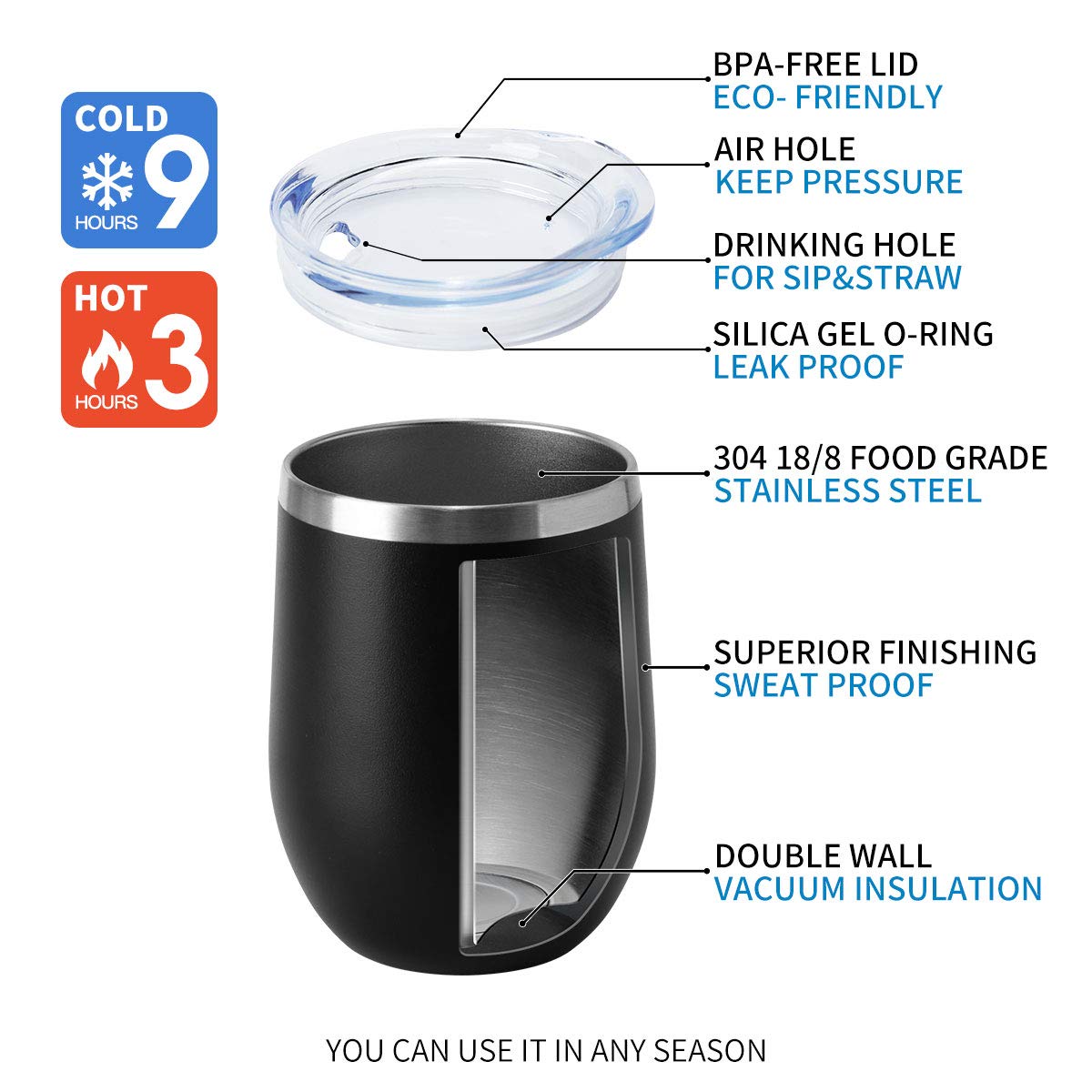 - Ang 12 onsa na kapasidad ay perpekto para sa pagdala sa paligid, maging sa paaralan, opisina, gym o sa labas. Madali itong dumulas sa may hawak ng tasa ng kotse, ang rack ng bisikleta o ang bag sa magkabilang panig ng backpack. Kung saan mo masisiyahan ang kasiyahan ng Travel Tumbler. (Tandaan: Panatilihin ang isang tamang dami ng likido upang maiwasan ito mula sa pag -apaw).