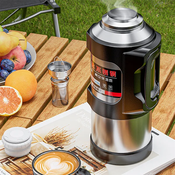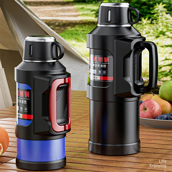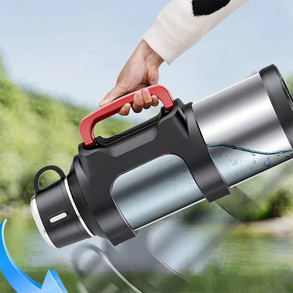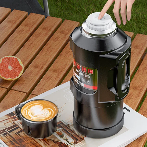 Ang thermos flask na ito ay gawa sa high-grade 316 hindi kinakalawang na asero, na malinis, palakaibigan sa kapaligiran at mas malamang na mapanatili ang bakterya. Pindutin upang palabasin ang tubig. Ang takip ay maaari ring magamit bilang isang maliit na tasa, na kung saan ay maginhawa at simple. Iniiwasan nito ang problema ng pag -inom ng tubig nang direkta mula sa sobrang timbang na malalaking mga balde o kaldero. Pagkatapos gamitin, maaari itong direktang mailagay sa takip nang hindi kumukuha ng sobrang puwang.