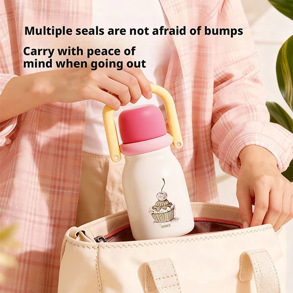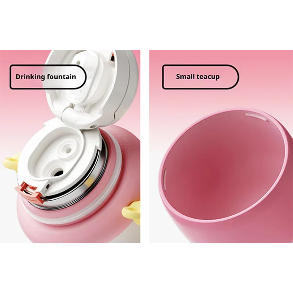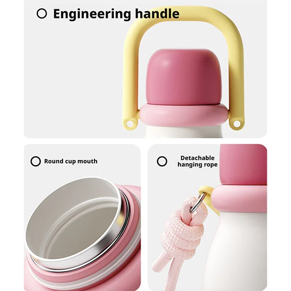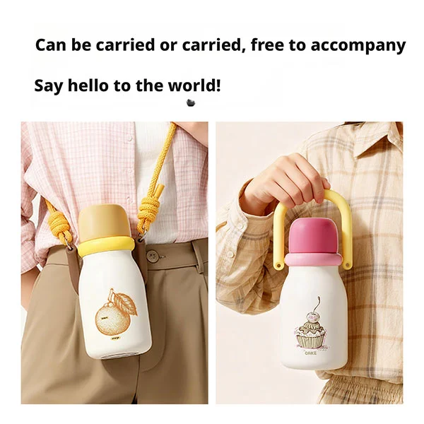 Nagtatampok ang BPA free thermos cup ng ergonomic na disenyo ng katawan ng bote, na ginagawang madali para sa mga sanggol (mahigit 18 buwang gulang) na hawakan gamit ang kanilang maliliit na kamay