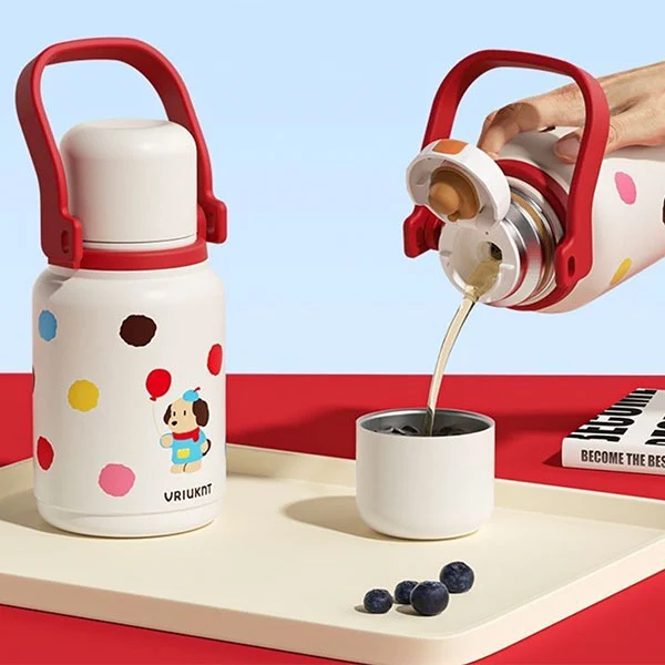 Ang insulated vacuum flask ay maaaring gamitin bilang isang kailangang-kailangan na bote ng tubig para sa mga bata upang pumunta sa paaralan o maglakbay, na kung saan ay napaka-angkop para sa mga bata dahil ang kanilang mga kamay ay maliit at ang mga strap ay maaaring palayain ang kanilang mga kamay